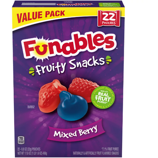 Custom TreatsFunables fruit snacks in mixed berry come with 22 individually wrapped pouches. Each gummy is made with 7.1% real fruit puree and natural flavors,...