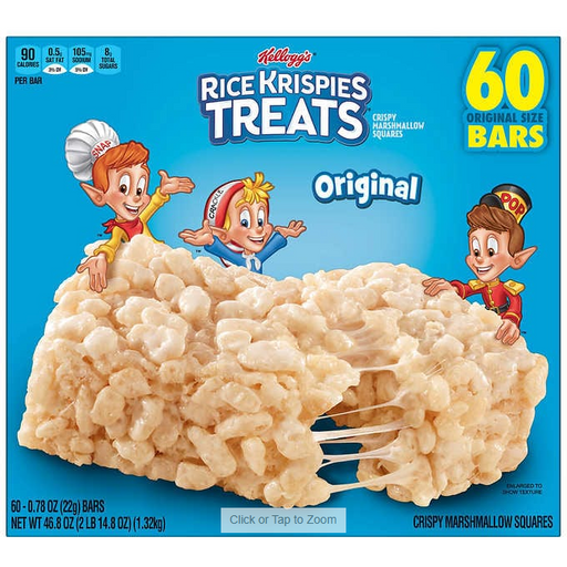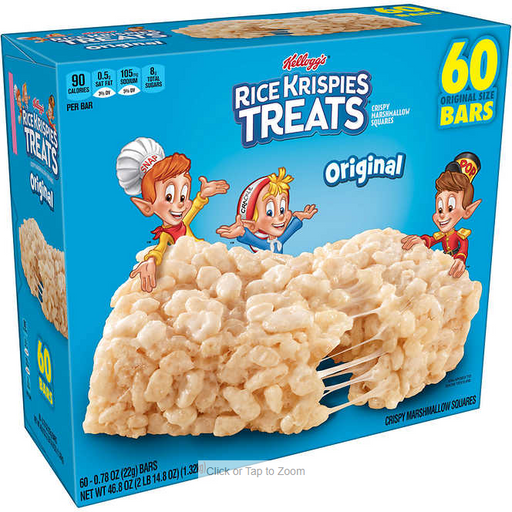 Custom Treats60-count 0.78 oz. Bars 1 Box 90 Calories per bar Rice Krispies Treats Original Marshmallow flavor