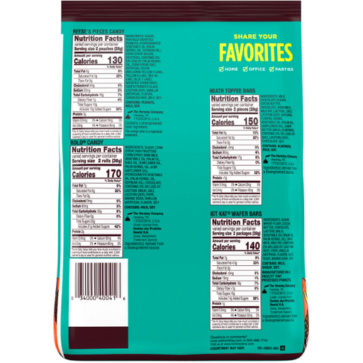 Custom TreatsContains one (1) 68.7-ounce, 155-piece bulk bag of Hershey Factory Favorites Chocolate and Creme Assortment Snack Size Candy The perfect mixture o...