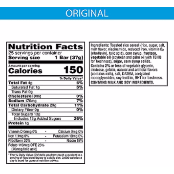 Custom TreatsEach pack includes 25 individually packaged Rice Krispie Treats Classic, crispy, satisfying dessert No high-fructose corn syrup 150 calories per bar