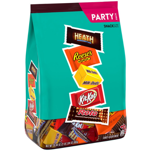 Custom TreatsContains one (1) 35.04-ounce bulk party pack of Hershey Chocolate and Peanut Butter Assortment Snack Size Candy Mixture of chocolate and peanut bu...