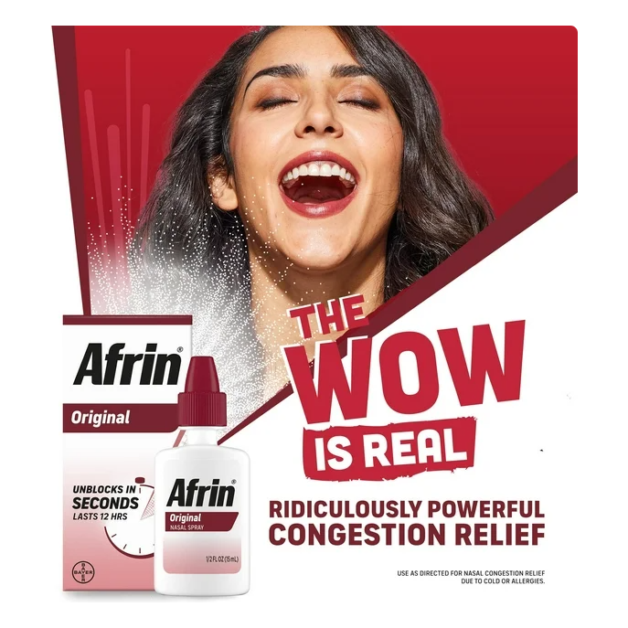- One box of 15 mL Afrin Original Maximum Strength 12 Hour Nasal Congestion Relief Spray