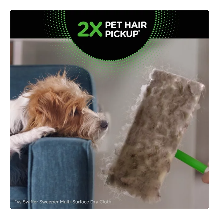 - Shed happens. Trap and lock 2X * dirt, dust and pet hair. Lots of pet hair. (* vs Swiffer Sweeper Multi-Surface Dry cloth)