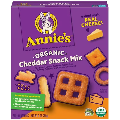 Annie'sCheddar crackers, pretzels, breadsticks and buttery crackers in a cheddar seasoning. No artificial flavors or synthetic colors. USDA Organic. Certi...