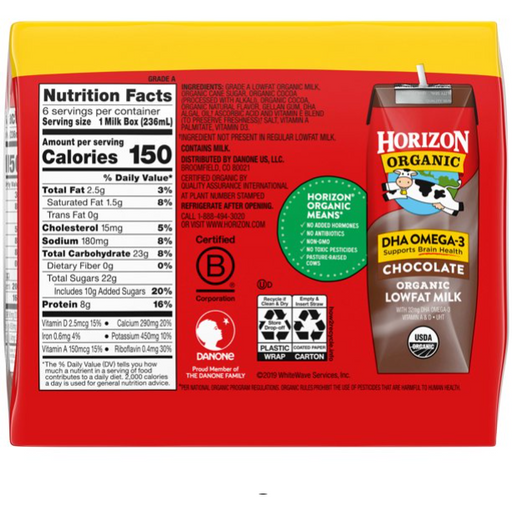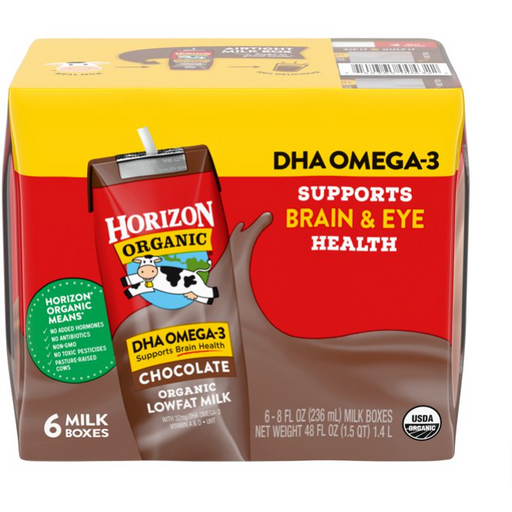 Custom TreatsHorizon Organic 1% Lowfat UHT DHA Omega-3 Chocolate Milk, 8 Oz., 6 Count: 1% lowfat chocolate milk in single-serve boxes Shelf stable Certif...