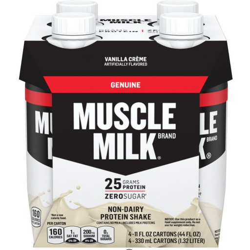Custom TreatsContains four 11 fl oz bottles of Muscle Milk Genuine Protein Shake, packaging may vary. 25 grams of protein per serving to help support muscle re...