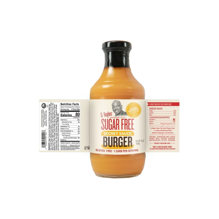 G. Hughes proudly presents the latest addition to his family of sugar-free condiments. G. Hughes Smokehouse Sugar-Free Burger Secret Sauce has the same great taste as your favorite fast food restaurant but without sugar.