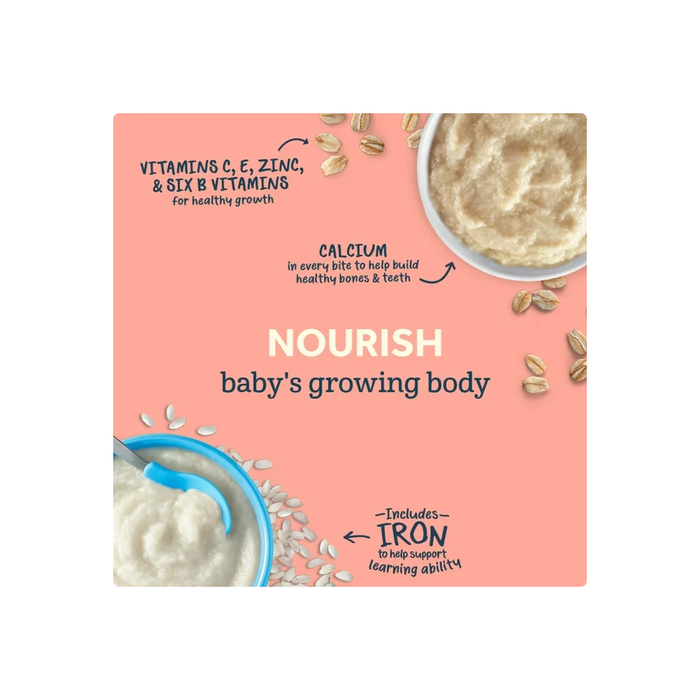 When your baby is ready to start solids, try Gerber 1st Foods Single Grain Oatmeal Baby Cereal. A versatile option for a first solid food, this Gerber baby food stage 1 uses only oatmeal for a single grain variety that helps your little one get used to solids. This non-GMO baby oatmeal cereal is made with no artificial colors or flavors. Gerber oatmeal contains iron to help support learning ability and just two servings of this infant oatmeal per day supply 90% of your baby's daily value of iron. Gerber infant cereal also has vitamin C, vitamin E, zinc and 6 B vitamins for healthy growth and calcium to help build healthy bones and teeth. Single-grain infant cereals are an ideal first solid food to check for food sensitivities and help develop your baby's eating skills. Completely cooked and ready to serve, this Gerber First Foods oatmeal is easy to prepare for your supported sitter by adding breastmilk or infant formula. Store in a cool, dry place and use within 30 days of opening.