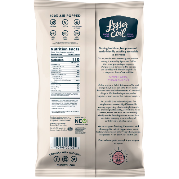 LesserEvil Organic Popcorn, Himalayan Sweetness, 6.4 oz