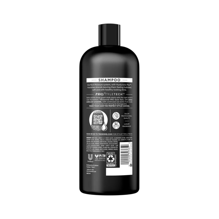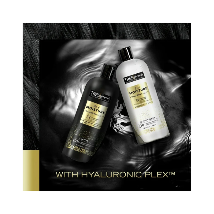 - MOISTURE RICH SYSTEM: TRESemmé Rich Moisture Shampoo for Dry Hair, with Hyaluronic Plex™, nourishes strands leaving them feeling hydrated, soft and with healthy-looking shine