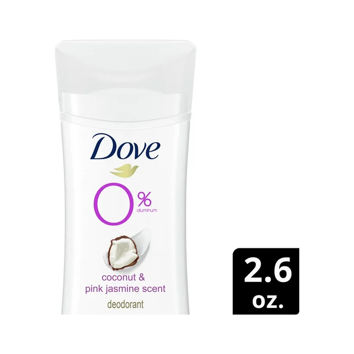 To keep your underarms feeling their best every day, they need the same love and care you give the rest of your body. Dove 0% Aluminum Deodorant Stick Coconut & Pink Jasmine is the most skin-kind aluminum-free deodorant, with no compromise on odor protection. So, when you use this 0% alcohol (ethanol) deodorant formula, you always get the protection you'd expect, and the care your delicate underarms deserve from an aluminum-free deodorant. Enriched with ¼ moisturizers, this gentle, non-irritating deodorant without aluminum works to give you soft, smooth underarms by caring for your skin. In addition to underarm care, Dove 0% aluminum deodorant provides effective odor protection. Designed to protect your underarms from odor for up to 48-hours, one application of this 0% alcohol (ethanol) deodorant formula will help you get on with your day worry free.