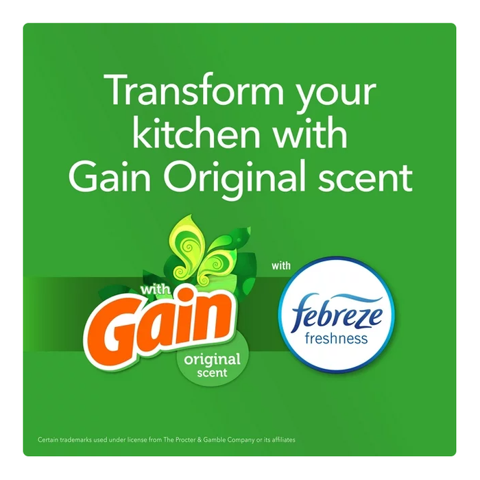 - NEUTRALIZES TOUGH TRASH ODORS: OdorShield technology and Gain with Febreze freshness work to trap odors and help eliminate garbage smells in your kitchen