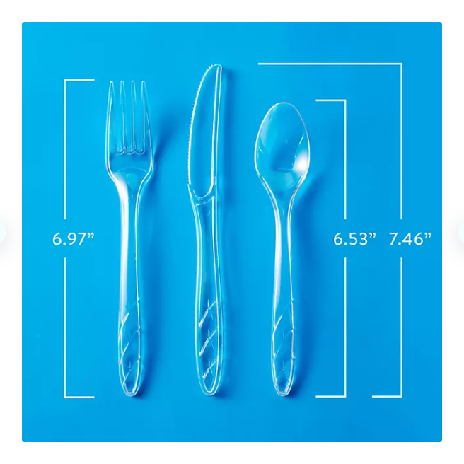 Each piece in the Member's Mark Clear Cutlery Combo Pack is made of thick, heavy-duty plastic, so it doesn't break easily. You can even rinse it and use it again to reduce waste.