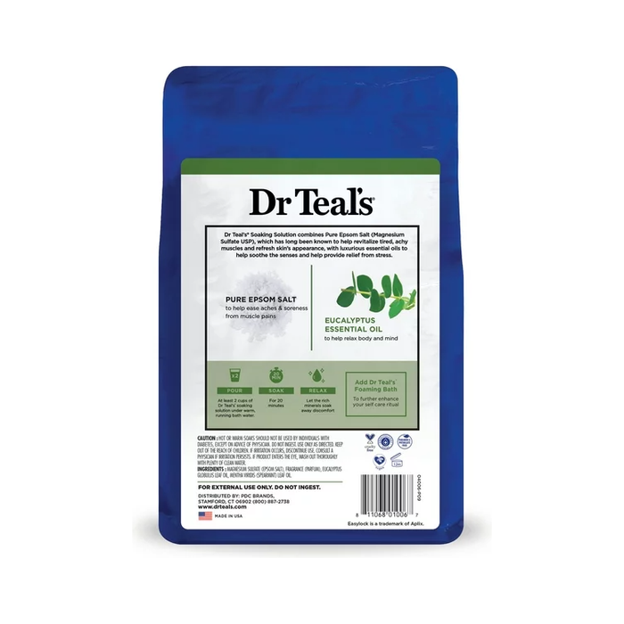 Dr Teal's Pure Epsom Salt Soaking Solution, Relax & Relief with Eucalyptus Spearmint, 3 lb