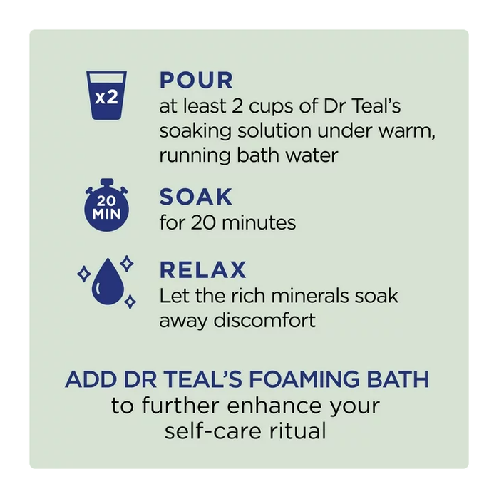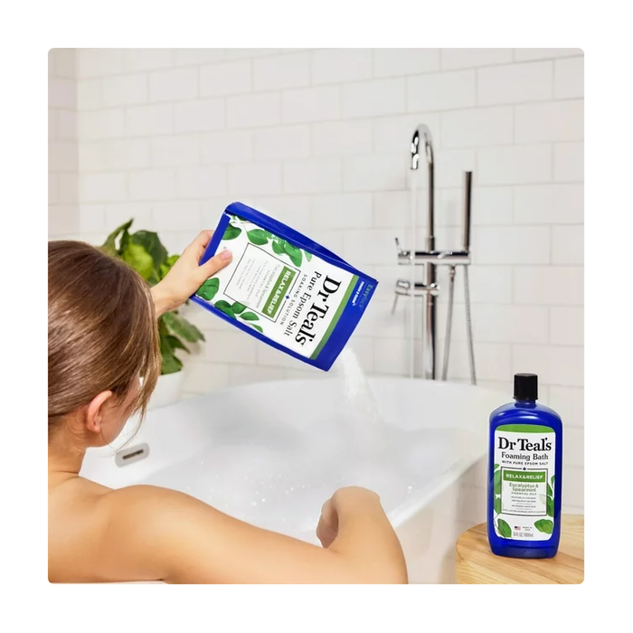 Discover the amazing benefits of Dr Teal's Pure Epsom Salt whole body soaks. Dr Teal's Relax & Relief combines Pure Epsom Salt with Eucalyptus & Spearmint essential oils to relax and restore the body, revive the spirit and relieve your achy muscles and feet.