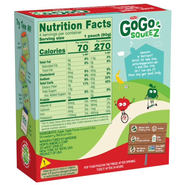 - पोर्टेबल, बीपीए मुक्त, निचोड़ने योग्य पाउच में 100% वास्तविक फल से बने GoGo पर सेब की चटनी
