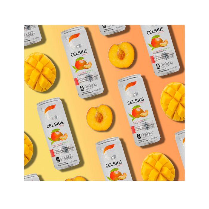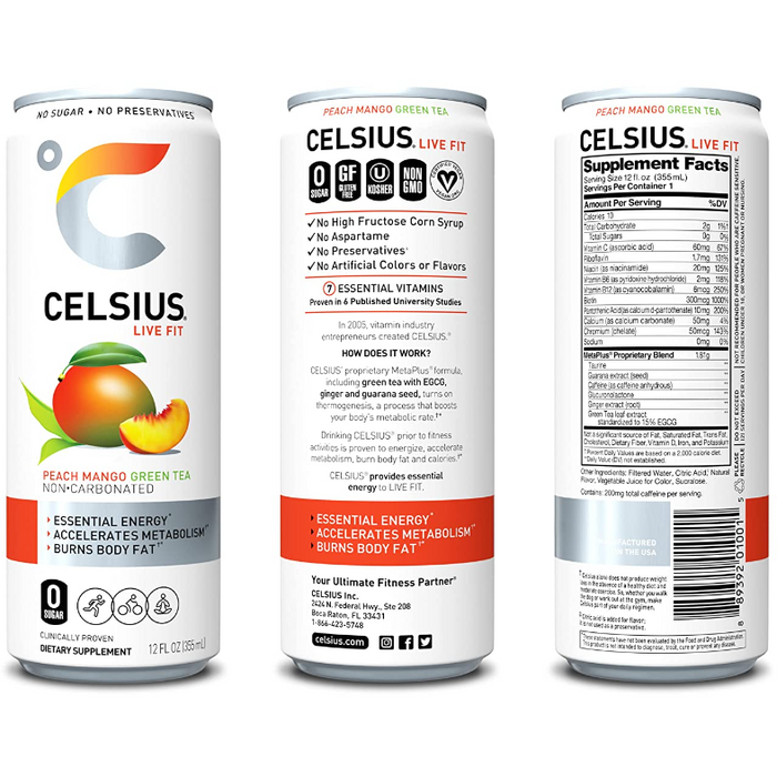 CELSIUS Essential Energy Drink 12 Fl Oz, Peach Mango Green Tea (Pack of 12)