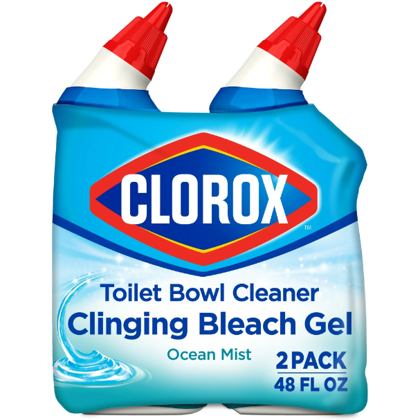 Clorox Toilet Bowl Cleaner, Clinging Bleach Gel, kills 99.9% of germs and whitens and brightens your toilet bowl with the trusted power of Clorox Bleach. This powerful gel cleaner clings to your toilet bowl while it destroys tough stains, disinfects and eliminates odors with a fresh Ocean Mist scent. The only Toilet Bowl Cleaner with Clorox Bleach, this thick cleaning gel coats the bowl to provide a deep clean and rinses away for a sparkling clean. Uniquely angled, this dispensing nozzle makes it easy to tackle hard-to-reach areas under the bowl rim with a simple squeeze of the bottle. The clinging bleach action lets you power through the toughest toilet stains with confidence. Clean, disinfect, and let your toilet sparkle with Clorox Toilet Bowl Cleaner, Clinging Bleach Gel in a Ocean Mist scent.