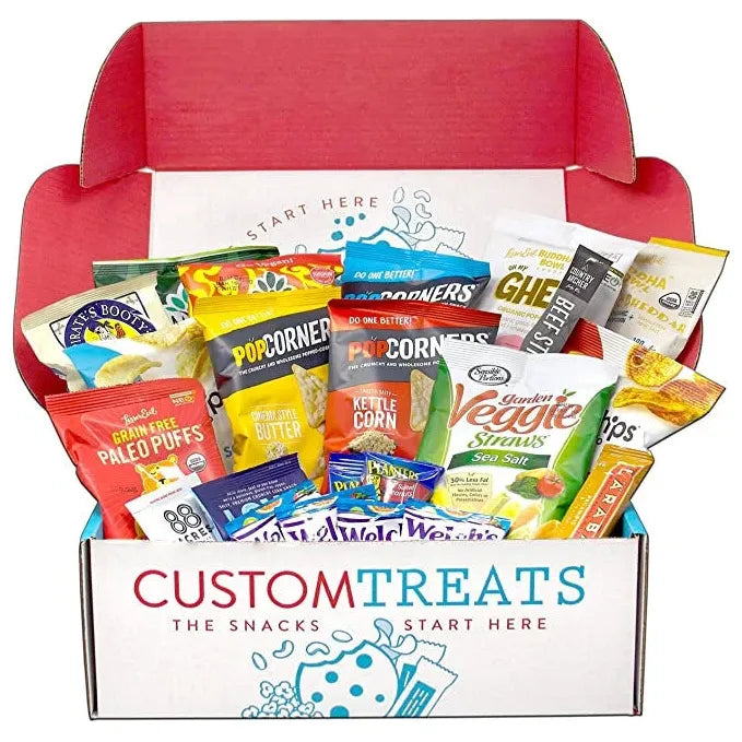 Snack smarter without sacrificing flavor. The Gluten-Free Snack Box from Custom Treats includes 20 delicious, gluten-free snacks thoughtfully curated for those who crave variety and better-for-you options. From crunchy to chewy, salty to sweet, every item is gluten-free and full of flavor.