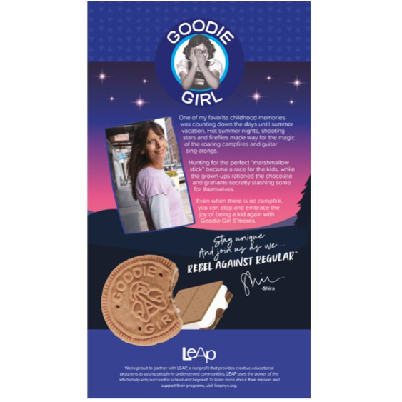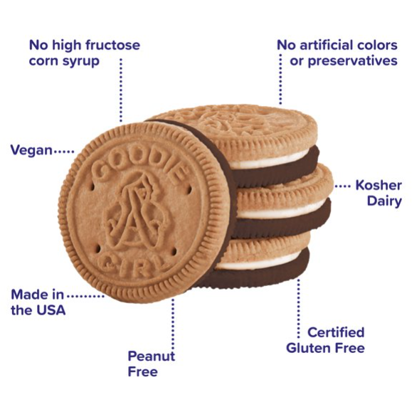 Chocolate and graham-style cookies with marshmallow creme-flavored filling. At Goodie Girl, we believe in breaking the rules, being tastefully bold and embracing your inner creative rebel. It’s what we strive to do every day, to “keep it real” and create naturally delicious versions of your favorite childhood treats.