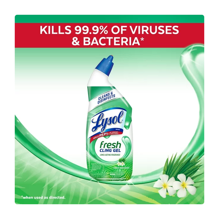 Lysol Toilet Bowl Cleaner Gel, For Cleaning and Disinfecting, Stain Removal, Forest Rain Scent, 24oz (Pack of 2)