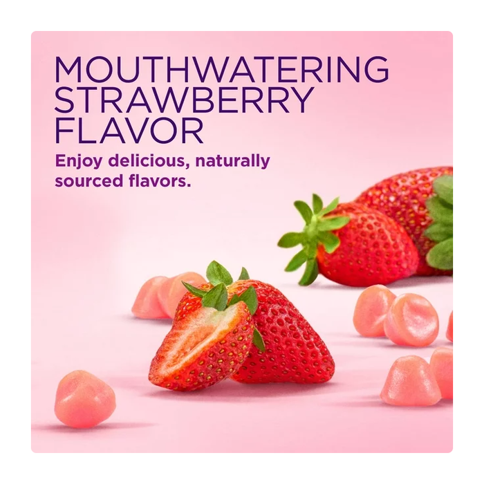 - DELICIOUS STRAWBERRY-FLAVORED GUMMIES. Enjoy soft, chewy strawberry-flavored gummies that are laboratory-tested plus are free of milk, lactose, soy, gluten, wheat, yeast, or fish