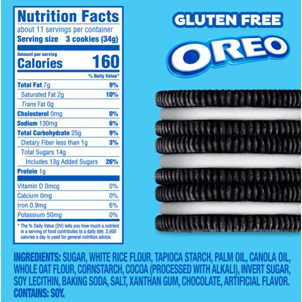 Milk’s Favorite Cookie is now Gluten Free! OREO fans will celebrate this delightful, certified gluten free treat. These gluten free chocolate wafer cookies are made with real cocoa and a blend of gluten free flour! Make any sweeter with gluten free OREO cookies. This package contains 1 pack of OREO Gluten Free Chocolate Sandwich Cookies.