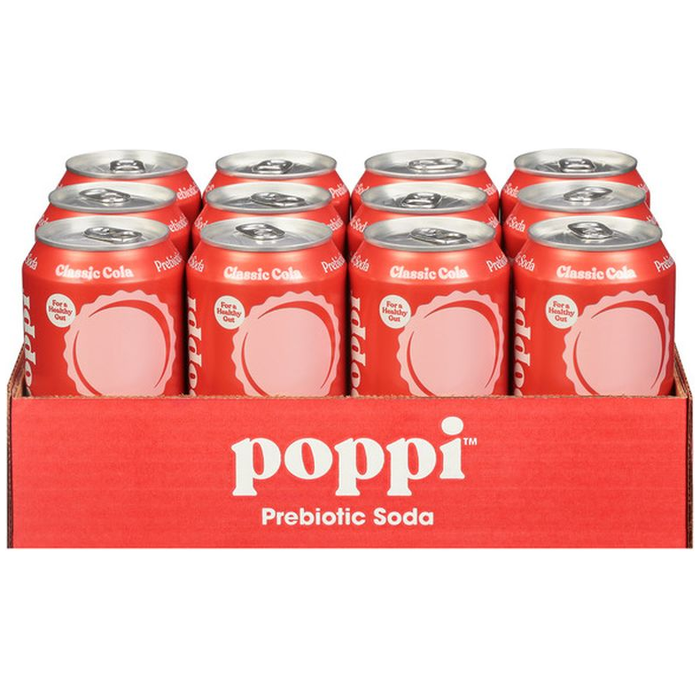 Poppi Prebiotic Soda, Classic Cola 12 oz 12 pack